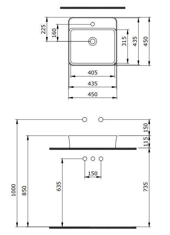 - Отверстия под смеситель:1
