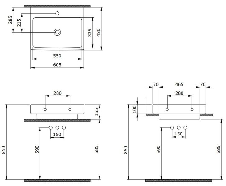 • Отверстия под смеситель: