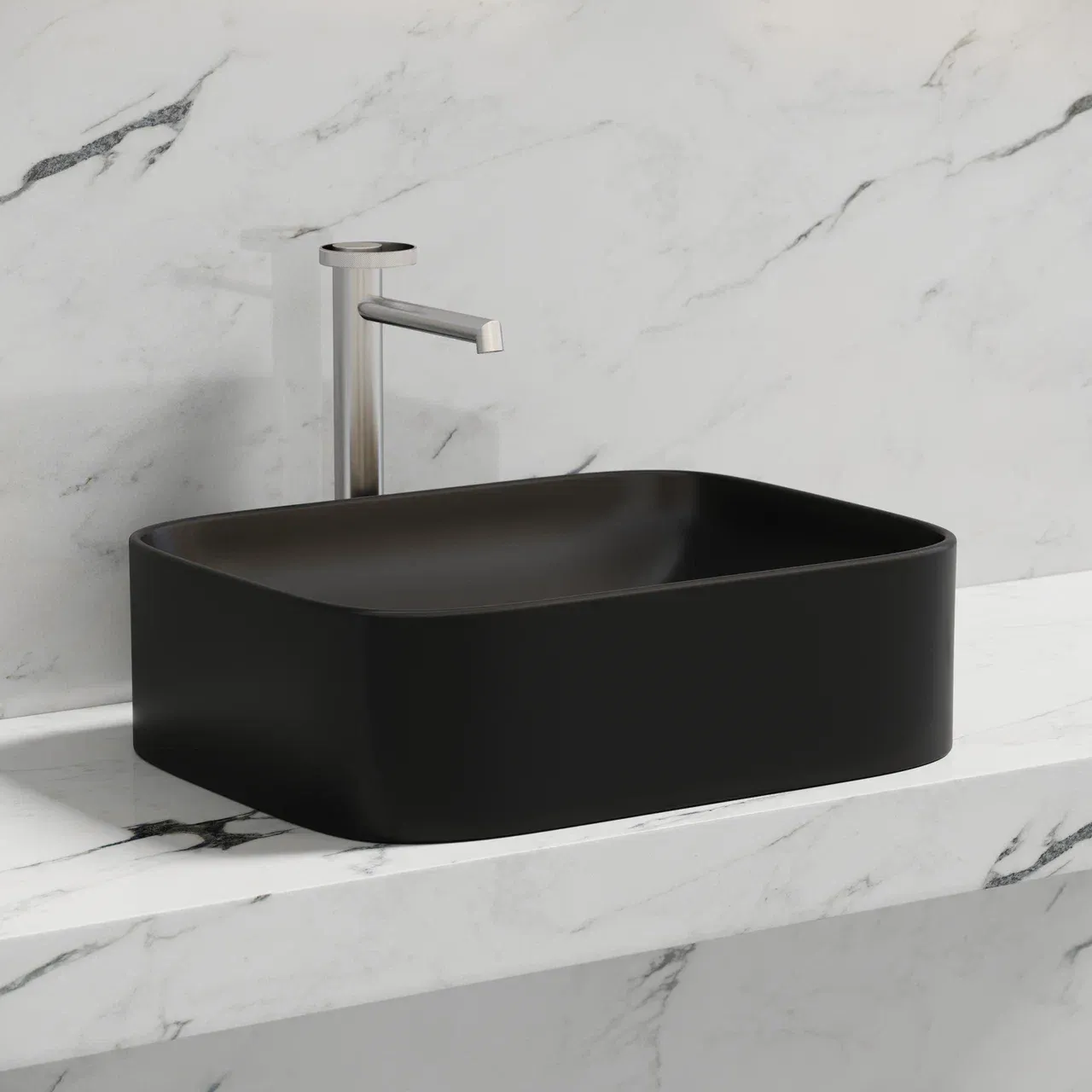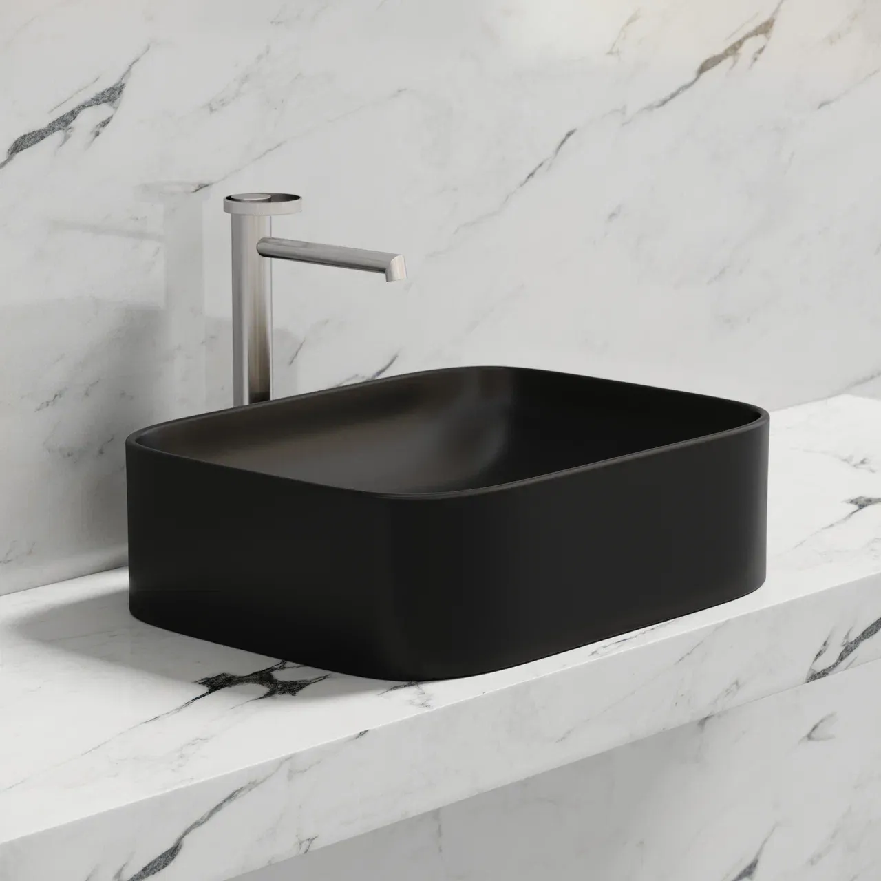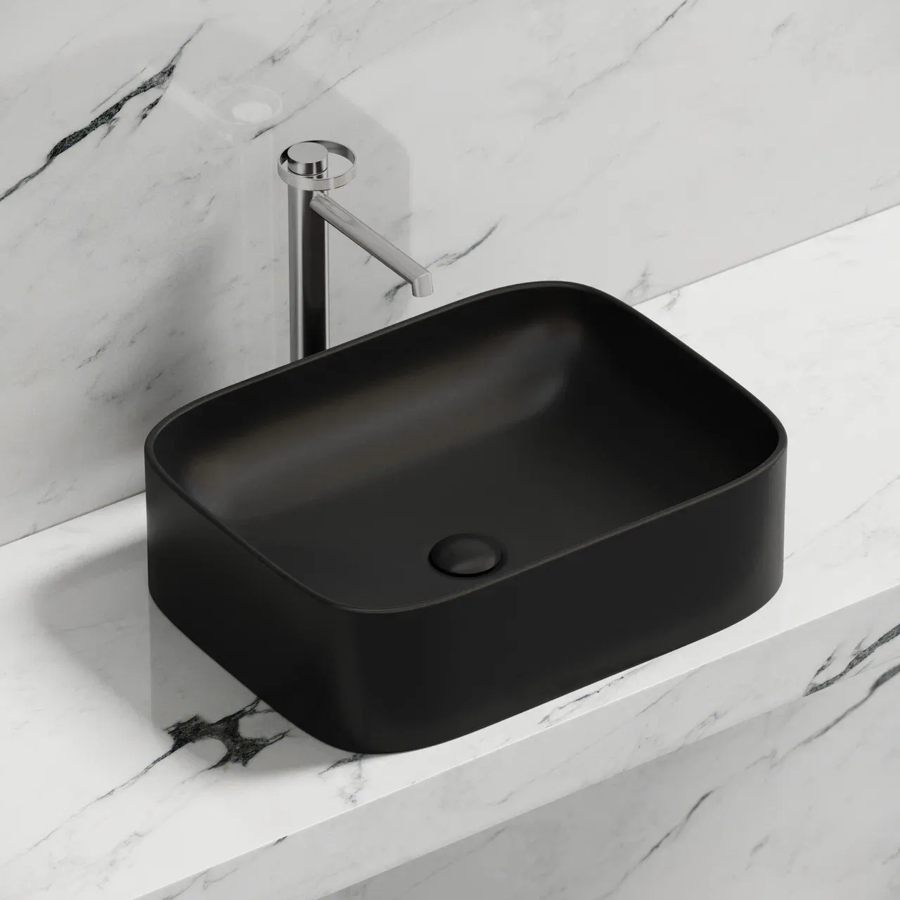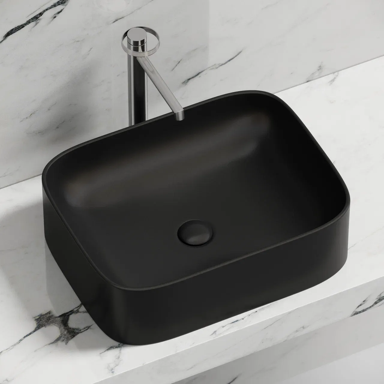 Умывальник чаша накладная прямоугольная (цвет Чёрный Матовый) Element 505*380*122мм