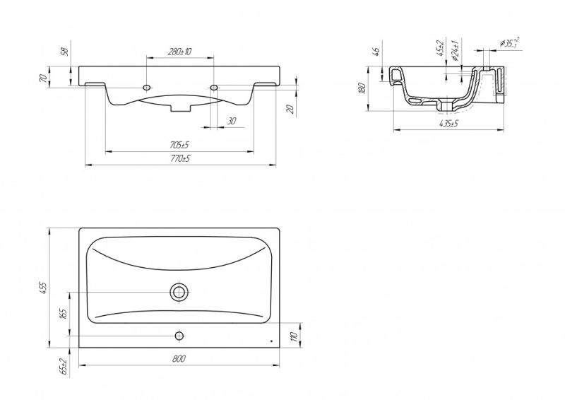 • Отверстия под смеситель: