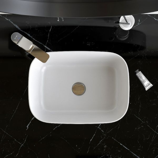 Универсальность — отсутствие отверстия под смеситель позволяет выбрать любую конфигурацию монтажа (настенный или настольный смеситель).