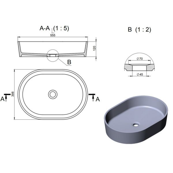 Раковина Holbi Ariel 55см бетон 2.02.011.44.4 купить
