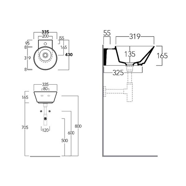 Размеры (ШхВхГ): 335х165х430 мм.