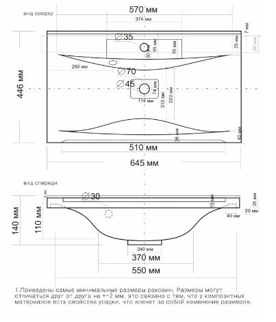 Мебельная раковина 65 см