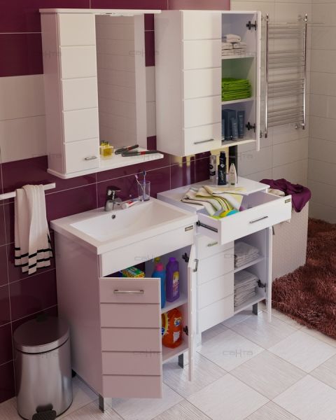 Шкаф СанТа отлично впишется в дизайн любой ванной комнаты, будь то компактная ванная в многоэтажном доме или большой санузел в загородном коттедже.Компания СанТа использует при производстве высококачественные водоотталкивающие материалы (ВЛДСП), соответствующие всем необходимым требованиям безопасности. Коллекция выполнена в эксклюзивном дизайнерском решении в лучших традициях современного стиля. Белый, основной цвет исполнения СанТа, отлично подходящий большинству дизайнерских решений. Шкаф предусматривает удобную и вместительную систему хранения, состоящую из дверей, ящиков. Качественные доводчики позволяют обеспечить мягкое и тихое закрывание.Россия родина бренда СанТа, вся продукция производится со строгим соблюдением всех стандартов, благодаря чему можно быть абсолютно уверенным в надежности и высоком качестве. Шкаф СанТа создаст уют и комфорт в любом дизайнерском решении, и ванная комната обретет неповторимый элемент интерьера.