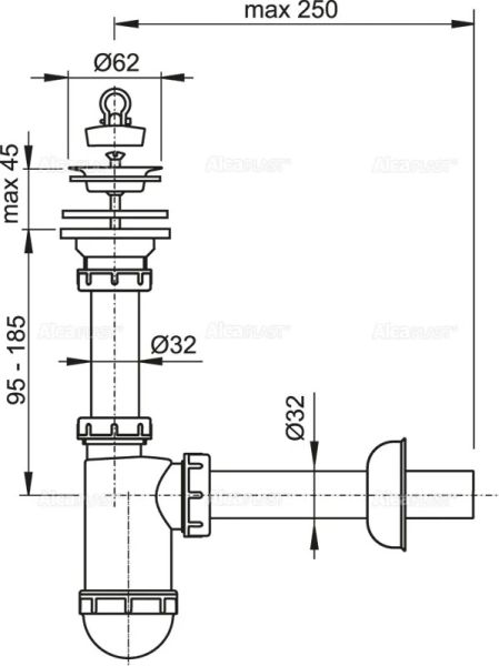 Сифон для раковины AlcaPlast ?32 с нержавеющей решеткой ?63 A411 купить