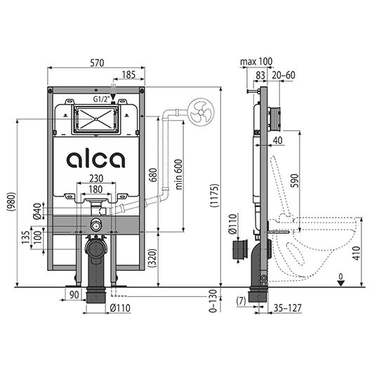 - Для установки подвесного унитаза с интервалом крепления 180 мм или 230 мм