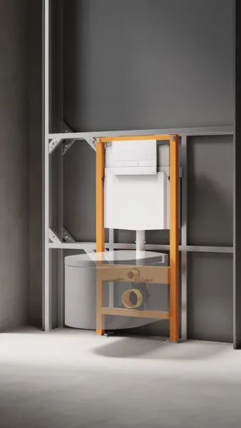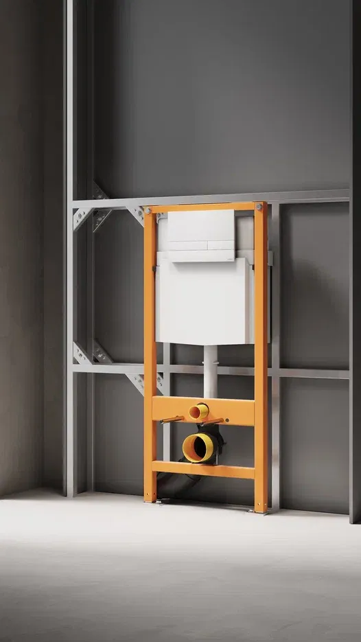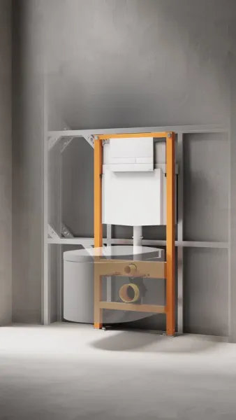 Надёжная конструкция системы инсталляции фиксируется с помощью универсальных креплений, позволяющих отрегулировать глубину монтажа. Кроме того, такие крепления обеспечивают возможность угловой установки рамы. Конструкцией также предусмотрены крепления для унитаза, способные выдерживать нагрузку до 400 кг.