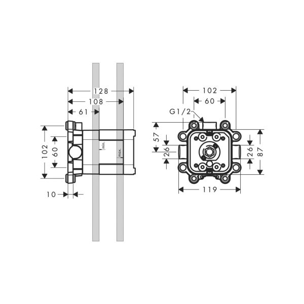 Скрытая часть верхнего душа Hansgrohe 10921180 Подробнее
