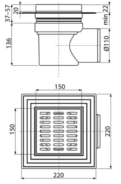 Сливной трап AlcaPlast 150 ? 150/110мм решетка - хром APV10 купить