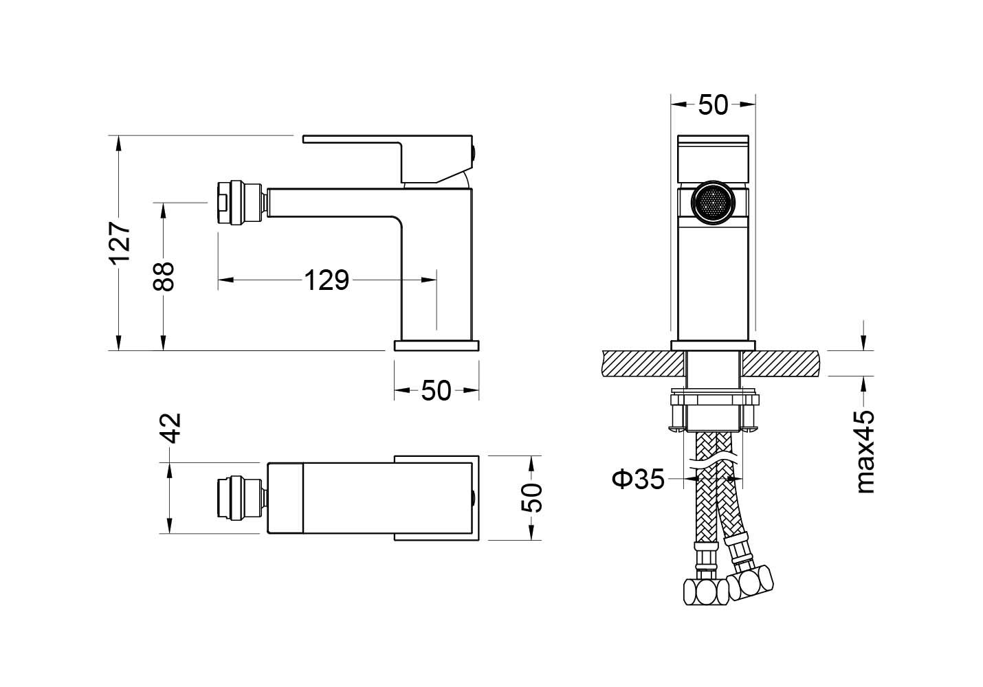• Высота смесителя: