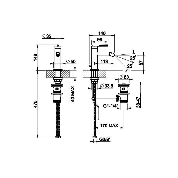 Смеситель для биде Gessi Inciso 58007.707 чёрный брашированный купить