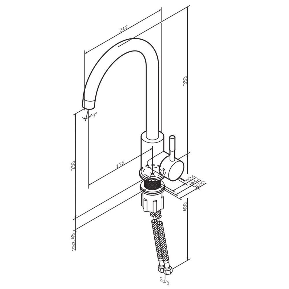 - Высота смесителя:35.3