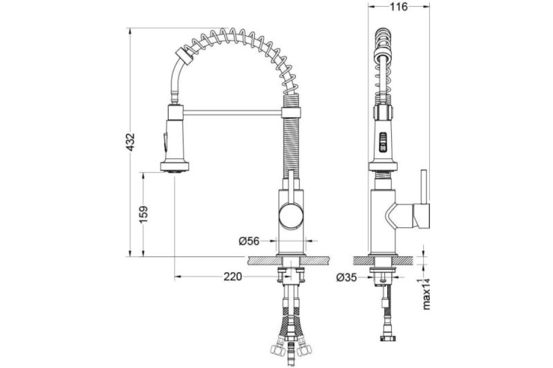 • Высота смесителя: