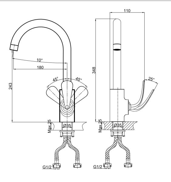 - Высота смесителя:34.8