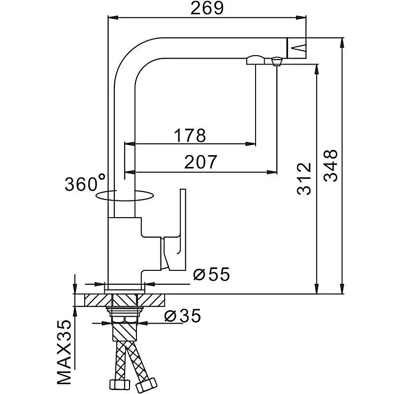 - Высота смесителя:34.8