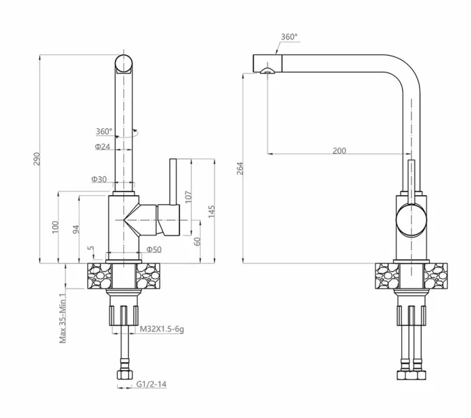 - Высота смесителя:29