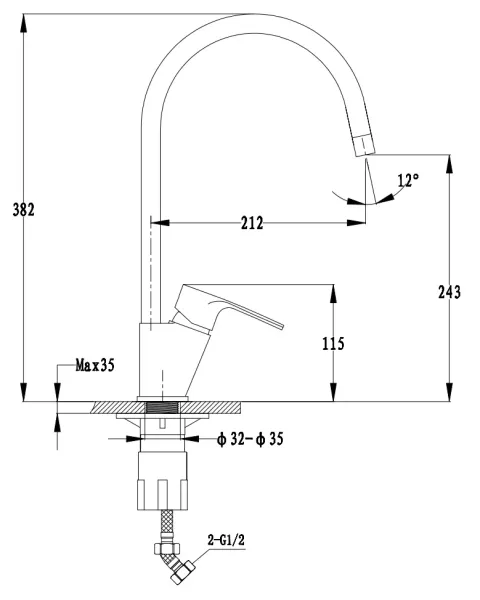 - Высота смесителя:38.2