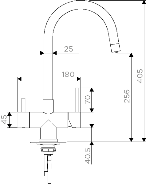 • Высота смесителя: