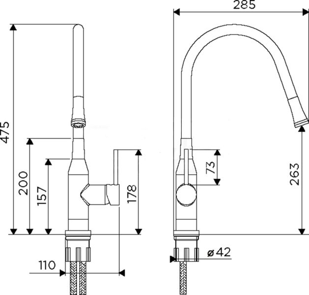 - Смеситель снабжен высоким поворотным шлангом, который при изменении формы всегда остается в устойчивом положении