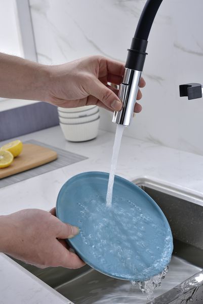 Смеситель для кухни, с гибким изливом, артикул Ha214021-CRИзготовлен из высококачественной латуни, которая отвечает высочайшим европейским стандартам качества, не содержит свинца, не разрушается со временем и безопасна для здоровья.