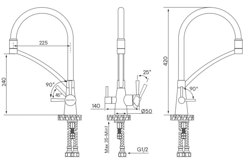 - Высота смесителя:42