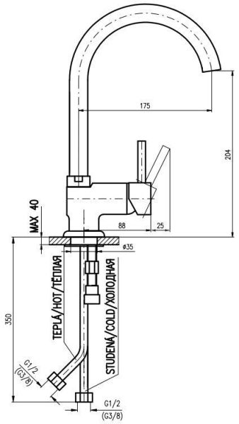 - Высота смесителя:20.4