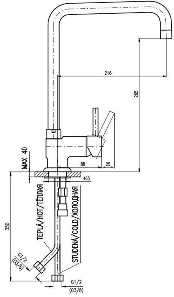 - Высота смесителя:26.5
