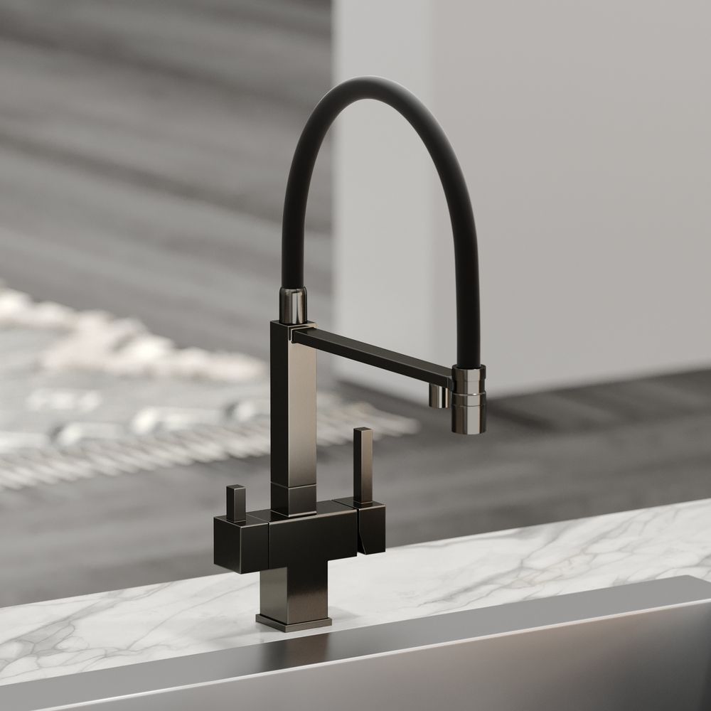 Смеситель для кухни SANCOS Moro с гибким изливом и возможностью подключения фильтра для воды, цвет вороненая сталь, арт. SC4006GGФункция "Холодный старт" - при включении смесителя активируется холодной поток, для экономии горячей водыАэратор, гибкая подводка, ключ и крепления для монтажа