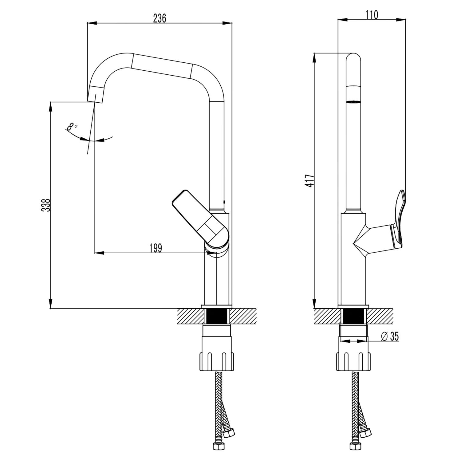 • Гибкий излив: