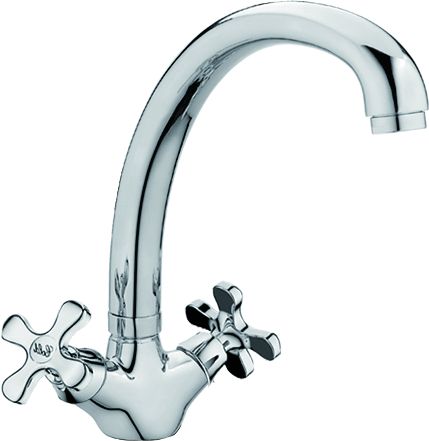 Смеситель для кухни с высоким, поворотным изливом RUSH арт. SA5350-23 с металлической ручкой из коллекции Sakhalin изготовлен из высококачественной латуни и имеет вентильное управление.В смеситель установлены кран-буксы (RSH502) с керамическими пластинами. Высота смесителя 244 мм. Излив поворотный (360гр), 221 мм. Высота излива до аэратора 200 мм. Аэратор изготовлен из пластика с нержавеющим корпусом, угол наклона - 17 гр. В комплекте универсальная присоединительная группа (шпилька-2шт), гибкая подводка с латунными гайками 35см - 2шт, фум-лента, индивидуальный пакет, паспорт, гарантийный талон.