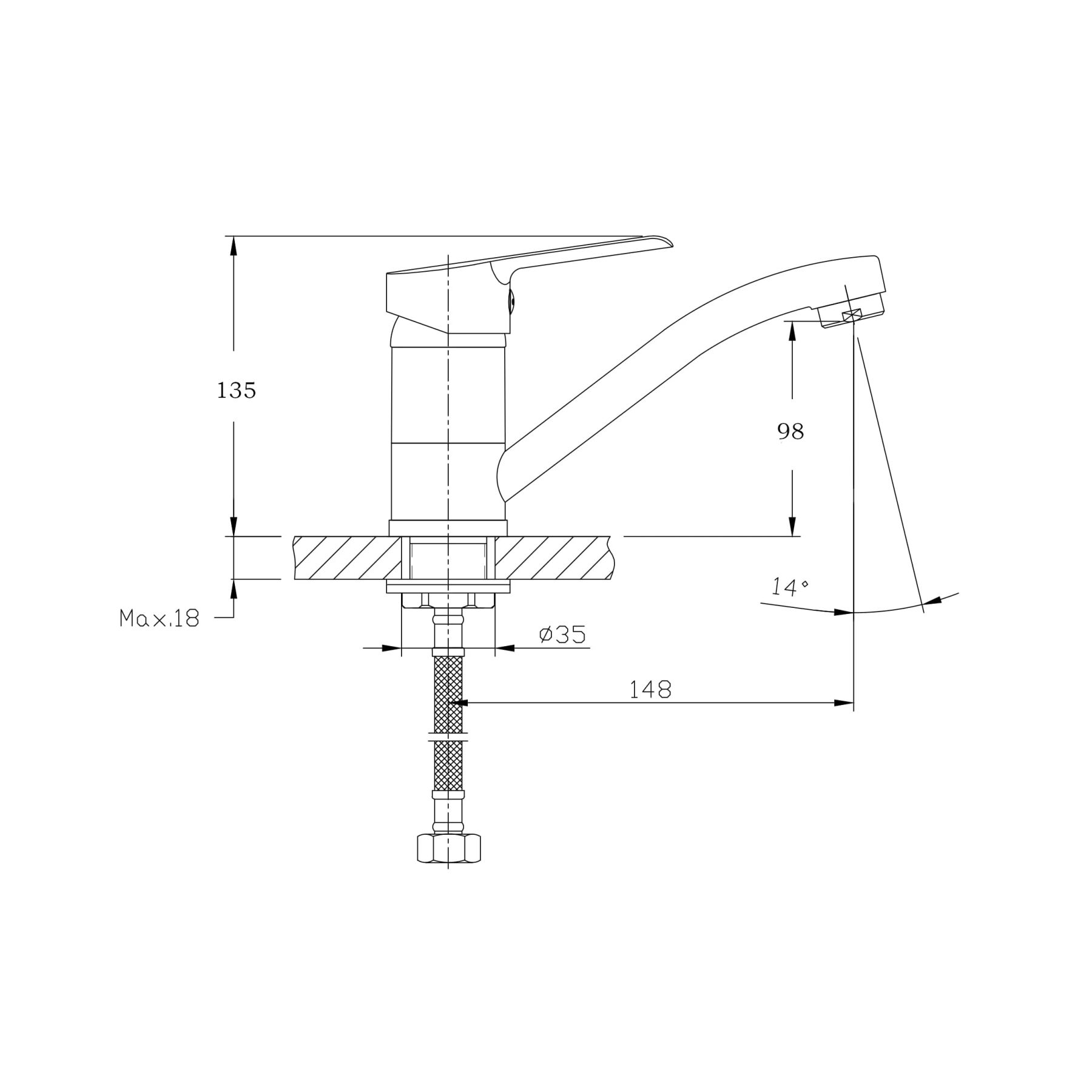 - Высота смесителя:13.5