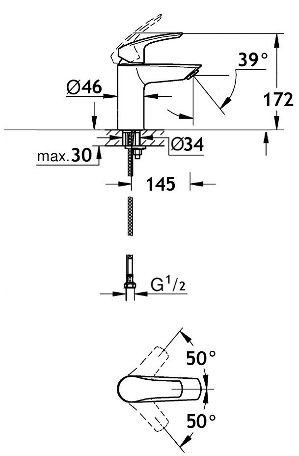 литой рычагмонтаж на одно отверстиеаэратор M 24 x 1керамический картридж с ограничителем горячей водыгибкая подводка G 1/2система быстрого монтажаИталия10 лет гарантии