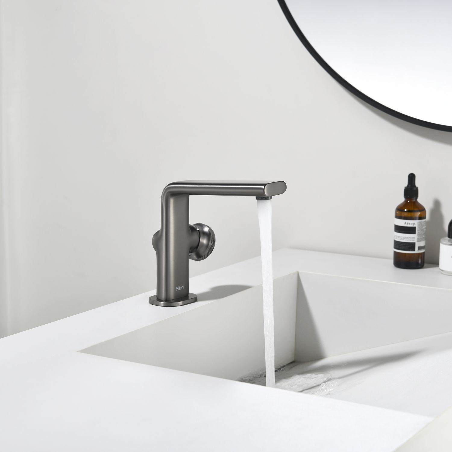 Смеситель для раковины датского производителя Black&White в цвете оружейная сталь. Корпус изготовлен из сантехнической латуни марки HPB 53– безопасного для здоровья сплава из олова цинка и меди. На изделии установлен картридж прогрессивной конфигурации, без возможности регулировки давления в полном диапазоне, доступна регулировка температуры для удобства настройки и экономии воды. Для включения используется ручка в форме диска с насечками и ярким цветовым дополнением.В дизайне продукта используются лаконичные прямоугольные формы со скруглением, которые гармонично дополнят многие современные интерьеры ванных комнат.