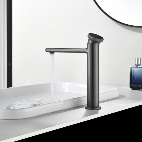 Смеситель для накладной раковины датского производителя Black&White в цвете оружейная сталь. Материал корпуса – сантехническая латунь марки HPB 59,безопасный для здоровья и высокоресурсный сплав.Для настройки температуры установлен керамический картридж прогрессивного типа– давление выдается постоянным , а температура выставляется с помощью круглой ручки с насечками расположенной сверху корпуса. В изделии пересекаются цилиндрические и прямоугольные формы, которые гармонично вольются в современные интерьеры ванных комнат.