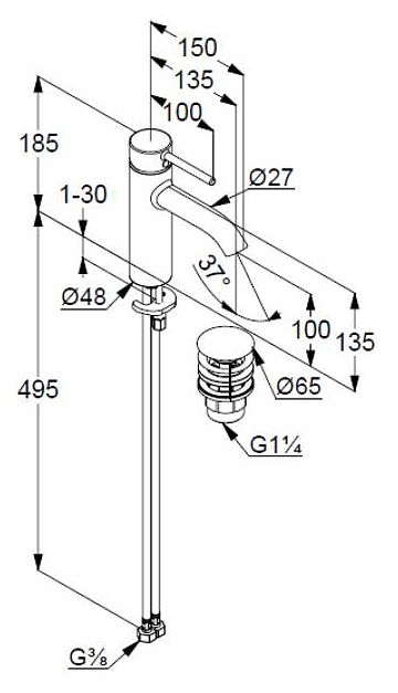 • однорычажный смеситель на умывальник 100 DN 15
