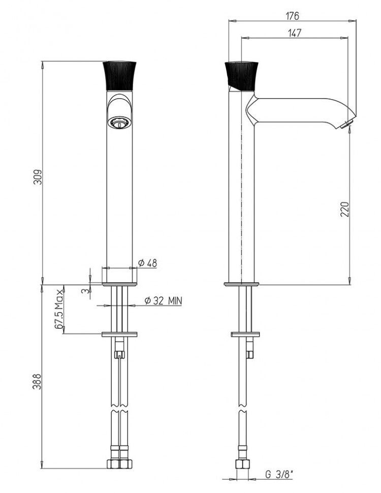 - Увеличенная высота корпуса смесителя позволяет использовать его с накладными раковинами и раковинами-чашами.