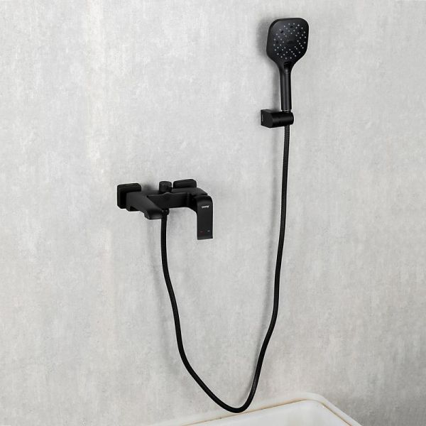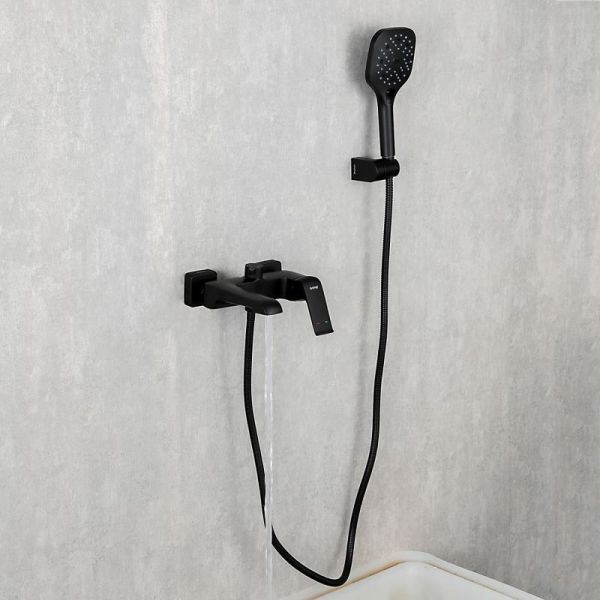 Смеситель для ванны Gappo Aventador G3250 - стильная латунная модель с коротким литым изливом и переключателем в корпусе. Цвет - черный. Душевая лейка в комплекте.