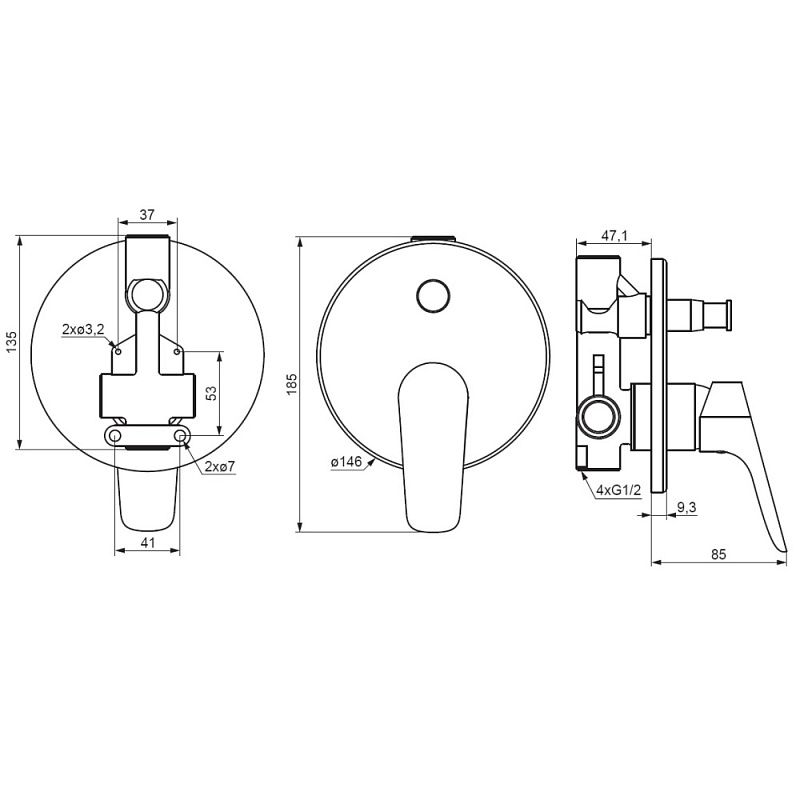 Смеситель для ванны и душа Damixa Jupiter 777100300 черныйСмеситель для ванны и душа Damixa коллекции Jupiter - минималистичный дизайн смесителя, монтируемого в стену, позволит грамотно использовать пространство. Его диаметр составляет всего 135 мм, поэтому это идеальное решение для небольших помещений. Встраиваемые в стену смесители сохраняют эстетику ванной комнаты благодаря тому, что все непрезентабельные части скрыты. А черный цвет придаст стиль! Размер смесителя (Ш/Г/В): 146x85x185 мм. Материал - латунь. Цвет - черный. Тип управления - однозахватный.