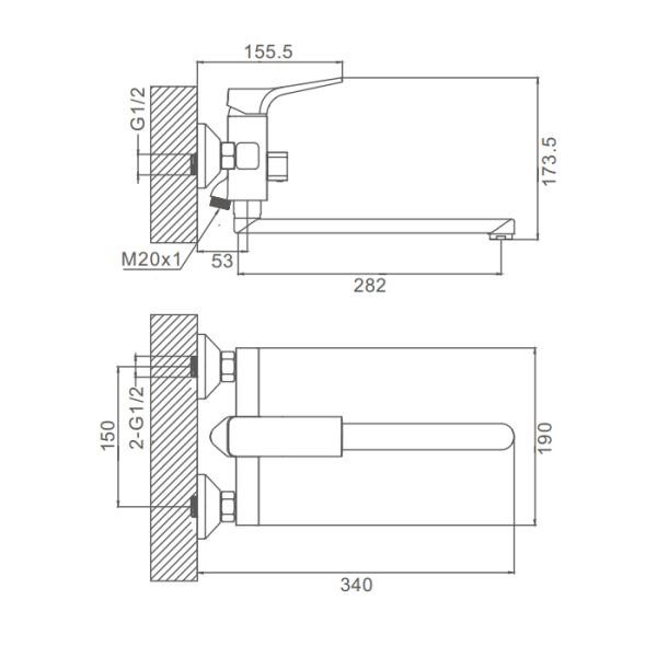 Смеситель для ванны Prohanss P62.22, хром.