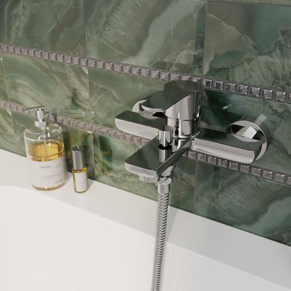 Хромированный смеситель SONATA для ванны выполнен в современном стиле и предусматривает удобное подключение гибкого душа.