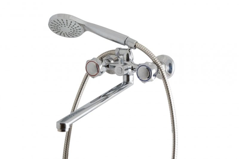Смеситель для ванны и душа: излив поворотный, керамический картридж, в комплекте эксцентрики и декоративные розетки, выход 1/2 для душевого шланга, шланг 1500 мм, лейка Ø 95 мм (1 режим).
