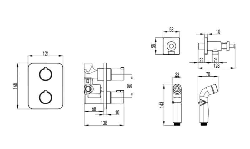 - Аксессуары в комплекте: лейка для биде с регулятором напора воды, шланг 1,2 м с функцией вращения лейки без перекручивания
