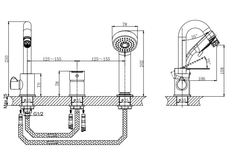 Смеситель на ванны RUSH арт. TE2835-333 из коллекции Tenerife изготовлен из высококачественной латуни и имеет рычажное управление.В смеситель установлен картридж D-35 с керамическими пластинами, а также дивертор с керамическими пластинами. Пластиковый аэратор с нержавеющим корпусом. Высота смесителя 230мм, угол наклона аэратора 35гр, высота излива до аэратора 106мм. В комплекте универсальная присоединительная группа для установки на вертикальную поверхность, однорежимная душевая лейка и душевой шланг длиной 1,5м., держать душевой лейки, нержавеющие эксцентрики фум-лента, индивидуальный пакет, паспорт, гарантийный талон.