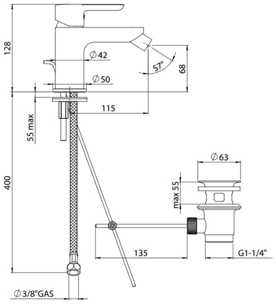 - Высота излива:68