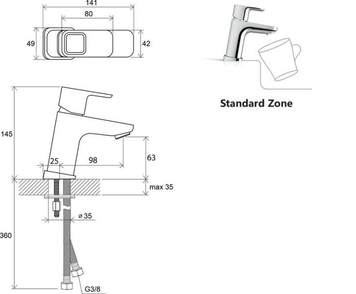 • высота смесителя: 140 мм - стандартный