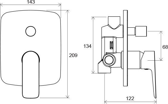 Предусмотрен как для ванн, так и душевых уголков с фиксированной и ручной лейками. Переключение Ванна/Душ; фиксированный Душ/Душевая лейка.