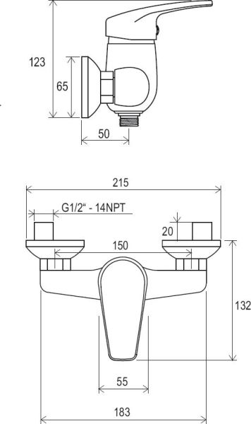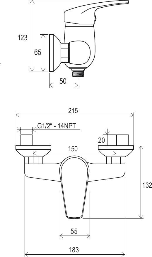 • межосевой размер смесителя : 150 мм