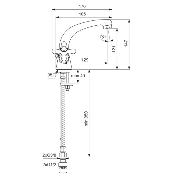 Угол поворота излива 360°