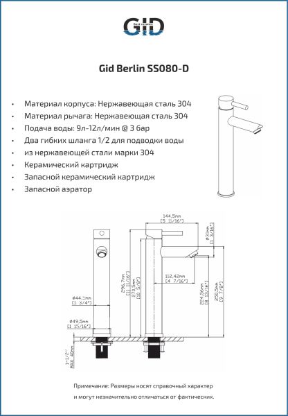 Смеситель высокий для раковины Gid Berlin SS080-CH-D SS080CHD хром Смеситель высокий для раковины Gid Berlin SS080-CH-D SS080CHD хром Казань 5350.00 {old_price} Gid